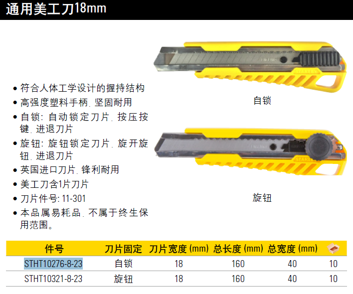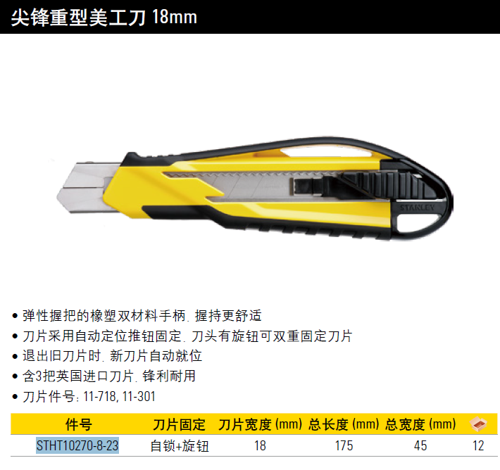 史丹利STANLEY 尖锋重型美工刀18mm 美术刀 STHT10270-8-23 /STHT10276-8-23/STHT10321-8-23/STHT10355A-23/STHT10359A-23