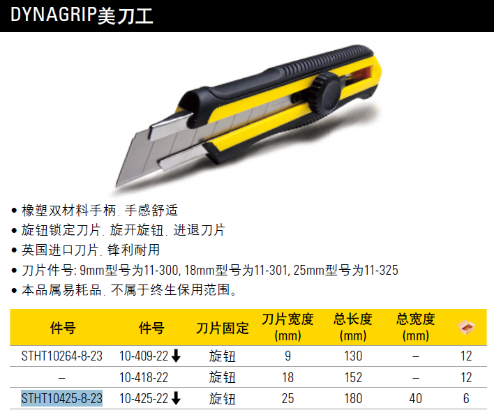 史丹利(STANLEY)橡塑柄防滑旋钮美工刀裁纸刀工具刀25mm STHT10425-8-23
