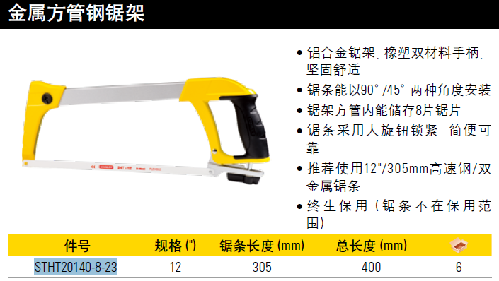 史丹利STANLEY 金属方管钢锯架12英寸 多功能锯子手工锯架弓 STHT20140-8-23