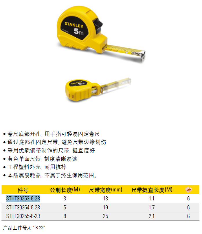 史丹利 卷尺3m 公制易定钢卷尺木工装修测量盒尺STHT30253-8-23