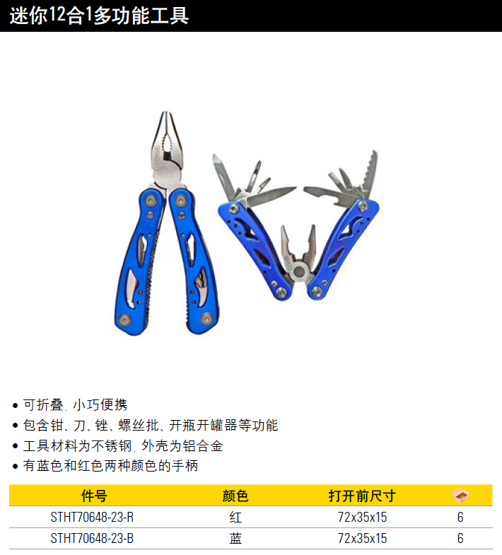 史丹利(Stanley)户外多功能工具钳组合折叠工具钳子战术钳野营多用便携钳子 迷你12合1 蓝色款 STHT70648-23-B