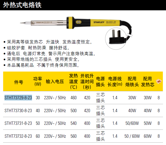 史丹利(STANLEY)外热电烙铁30W 电子维修焊接工具 焊锡电洛铁焊笔 STHT73729-8-23