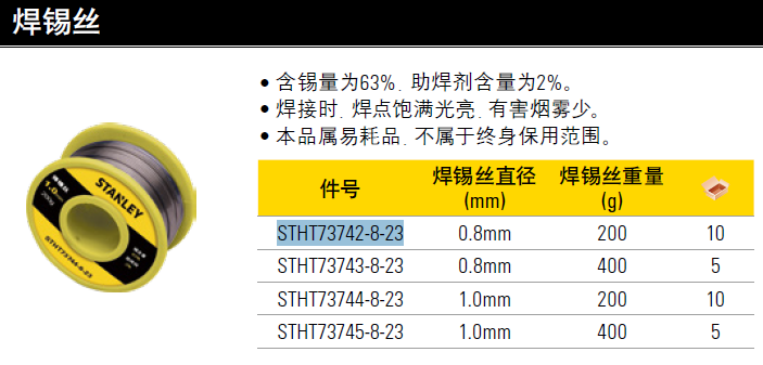 史丹利STANLEY 焊锡丝0.8mm/200g 企业专享 STHT73742-8-23