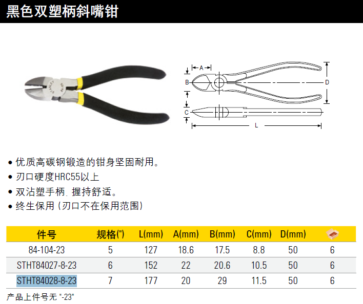 史丹利STANLEY DYNAGRIP重型斜嘴钳7英寸 斜口钳钢丝钳剪钳偏嘴钳子剪线钳 STHT84028-8-23企业专享