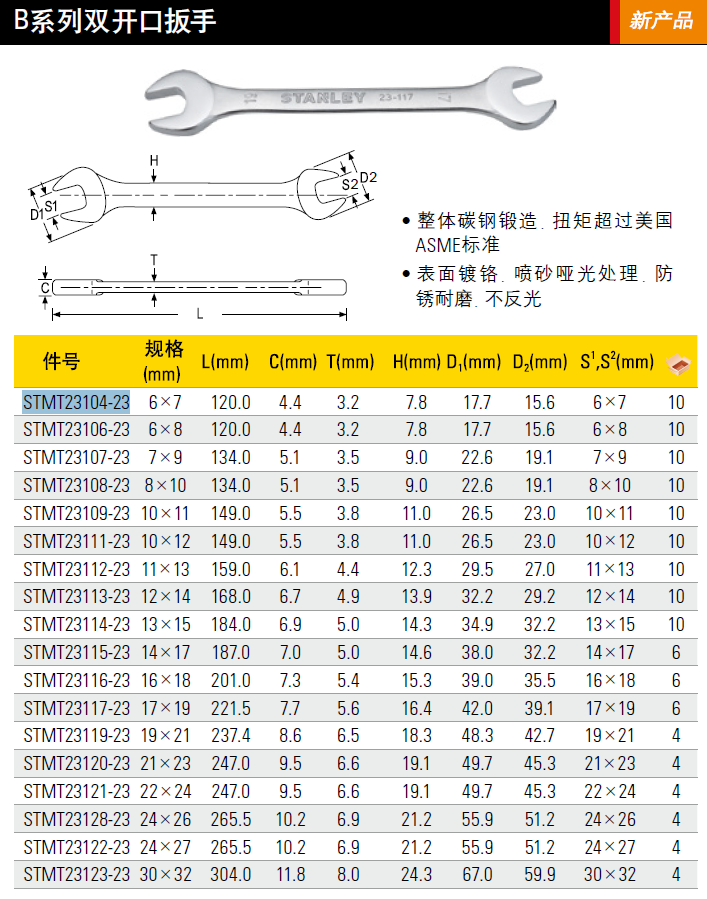 史丹利(STANLEY)订制B系列双开口扳手(6个装) 6x7mm STMT23104-23(付款即发货)