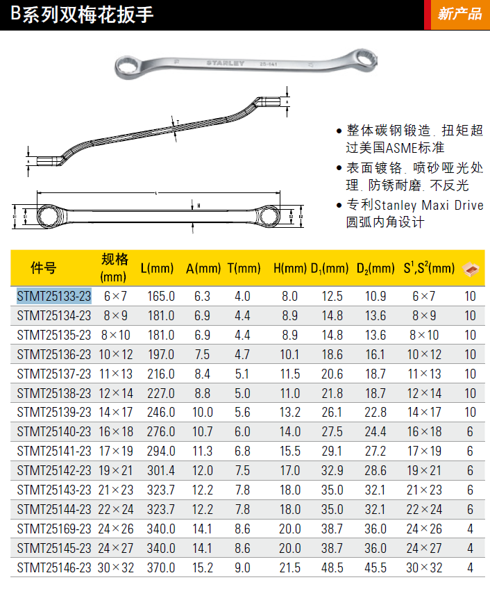 史丹利/STANLEY 双头梅花扳手6*7mm 汽修扳手 双头眼镜呆扳子 STMT25133-23