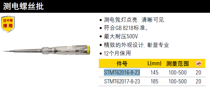 史丹利(Stanley)订制测电笔 测电螺丝批100-500V/145mm(6支装) STMT62016-8-23
