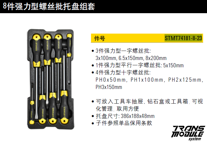 史丹利STANLEY 8件强力型螺丝批托盘组套 十字一字螺丝刀改锥起子 STMT74181-8-23 可定制
