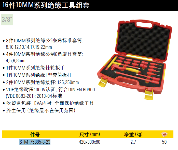 史丹利STANLEY 16件10MM系列绝缘工具组套 多功能维修 电工工具箱套装 组合工具 STMT75885-8-23 可定制