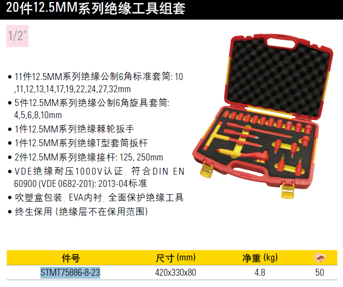 史丹利STANLEY 20件12.5MM系列绝缘工具组套电子电工套装 套筒套筒扳手 STMT75886-8-23 企业专享