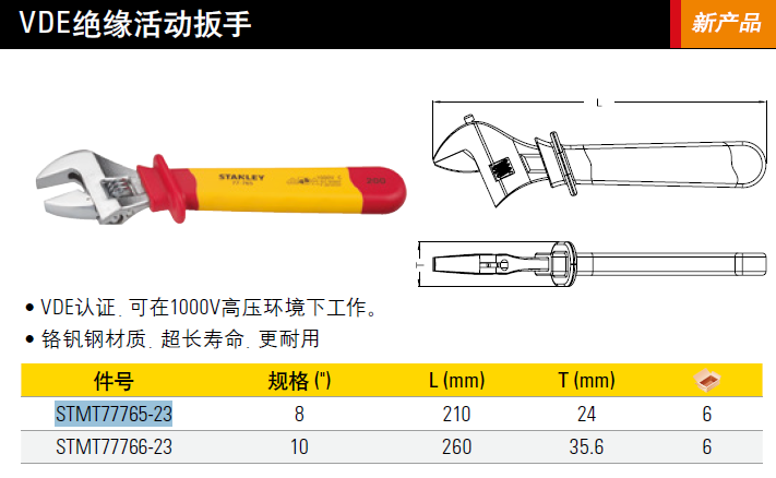 史丹利(Stanley)订制 8"VDE 绝缘活扳 STMT77765-23