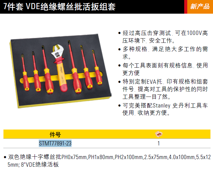 史丹利 VDE绝缘螺丝批 7件套活扳组套 STMT77891-23