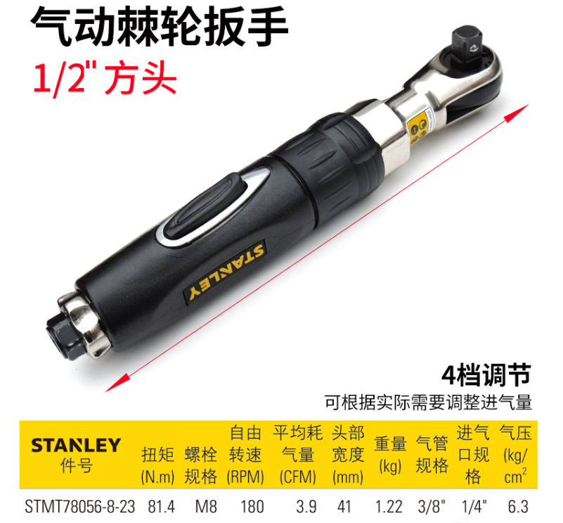 史丹利STANLEY 1/2英寸 气动棘轮扳手81.4N.m大扭力 强力风炮套筒工业级 气动工具 STMT78056-8-23 可定制