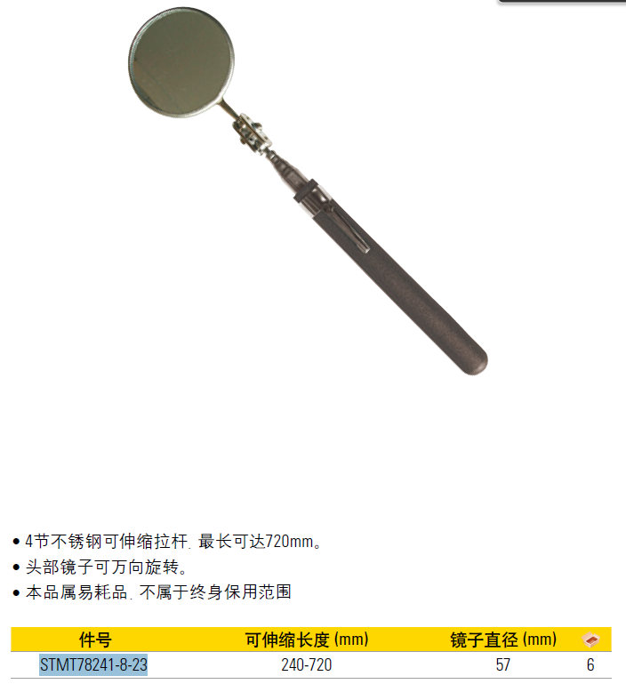 史丹利STANLEY 伸缩检测镜检修探测镜 不锈钢伸缩反光镜 STMT78241-8-23企业定制