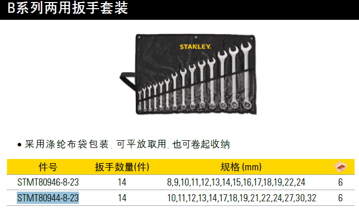 史丹利(STANLEY)14件套B系列梅花开口两用扳手套装10-32mm STMT80944-8-23