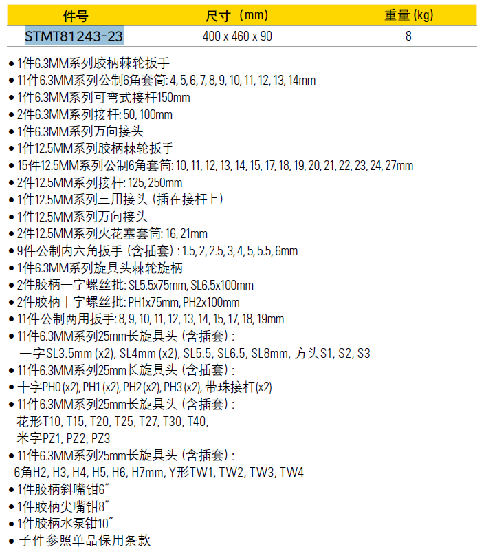 史丹利/STANLEY 110件综合工具组套 汽修汽保机修工具套筒扳手组合套装 STMT81243-23 可定制