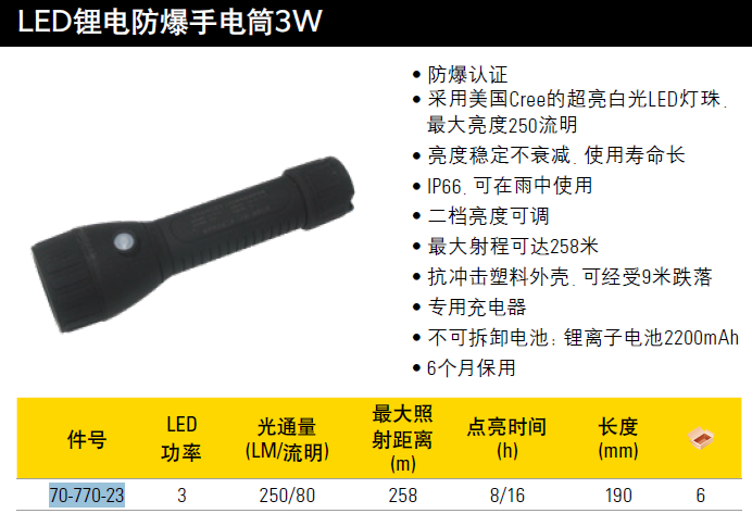 史丹利(Stanley)订制LED锂电防爆手电筒3W 70-770-23