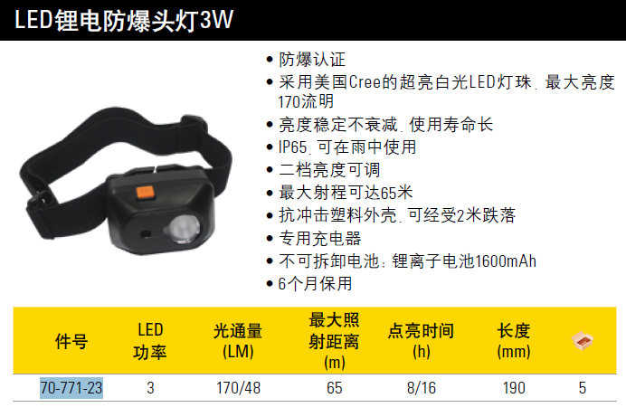 史丹利(STANLEY)70-771-23 LED锂电头灯3W