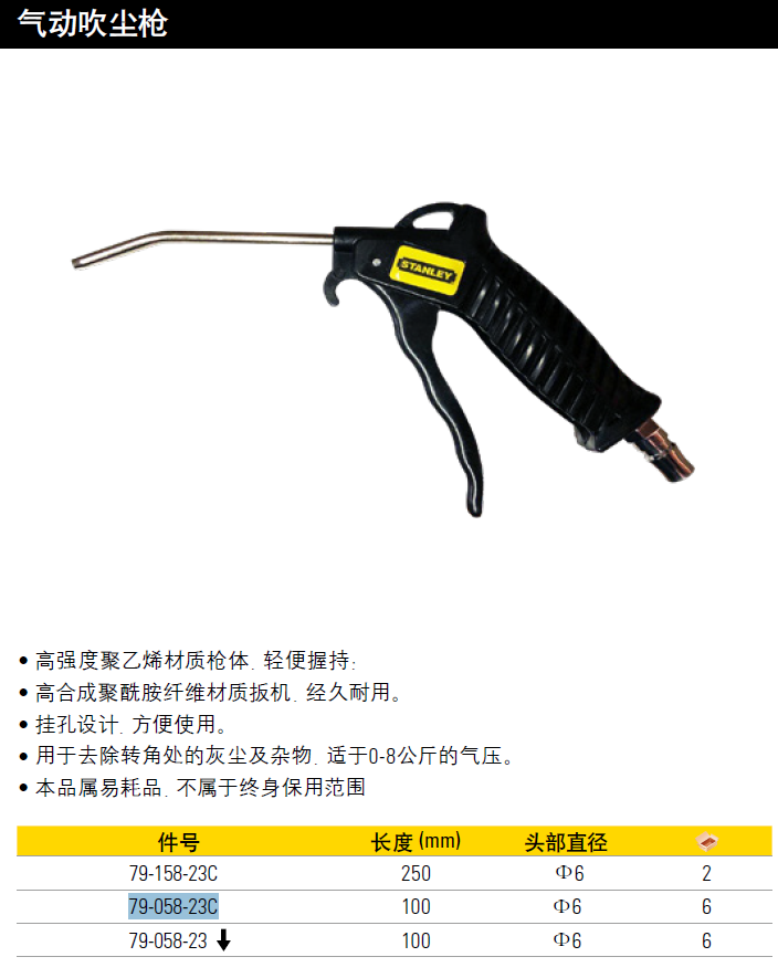 史丹利STANLEY 气动吹尘枪100mm 吹风枪喷气动尘吹抢除尘吹灰尘 79-058-23C企业专享