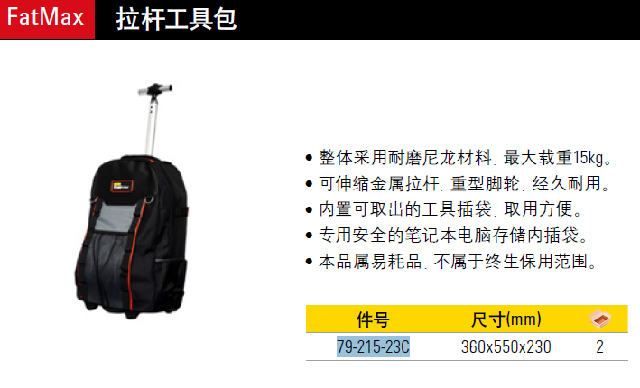 史丹利STANLEY Fatmax拉杆工具包 电工包帆布单肩工具包拉杆工具箱包 79-215-23C 企业定制