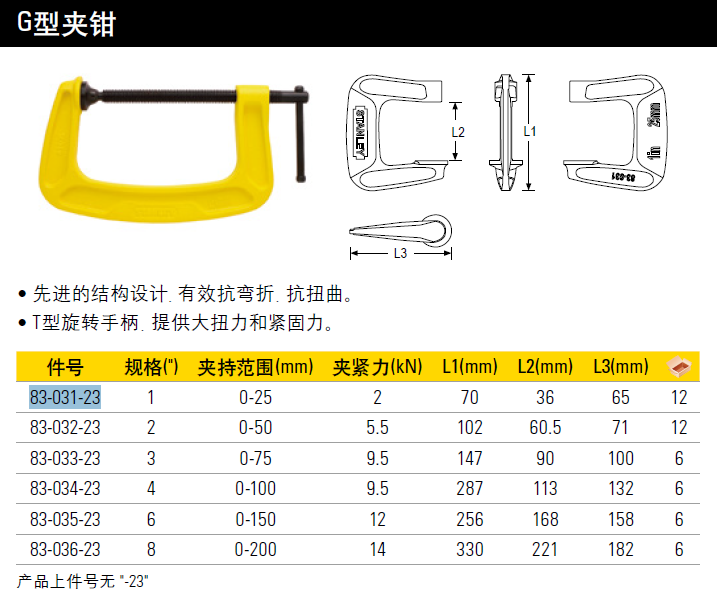 史丹利STANLEY G型夹钳1英寸 木工夹钳夹子c型夹钳g字夹木工夹固定夹具 83-031-23 企业定制