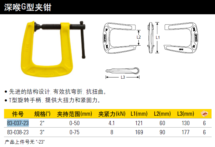史丹利(STANLEY)深口G型夹钳木工夹G型钳拉手宫型环工型架 83-037-23(2英寸)现货