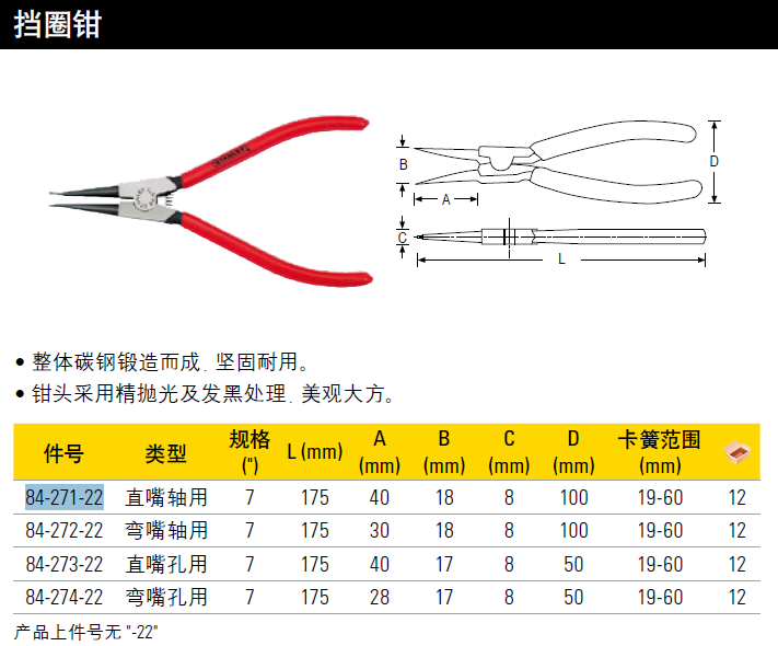 史丹利STANLEY 直嘴轴用挡圈钳7英寸 多功能卡环钳卡簧钳子 84-271-22 企业定制