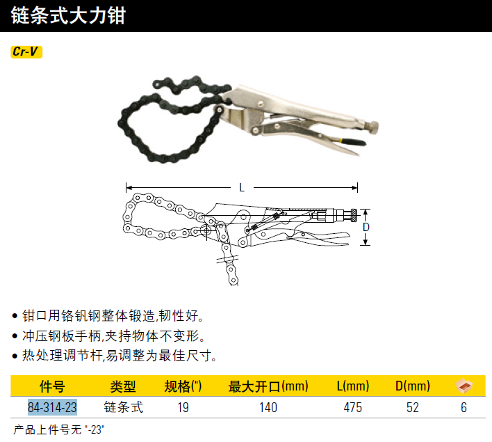 史丹利(STANLEY)链条式大力钳工业级固定夹持钳工具大力钳子 84-314-23(19英寸)现货
