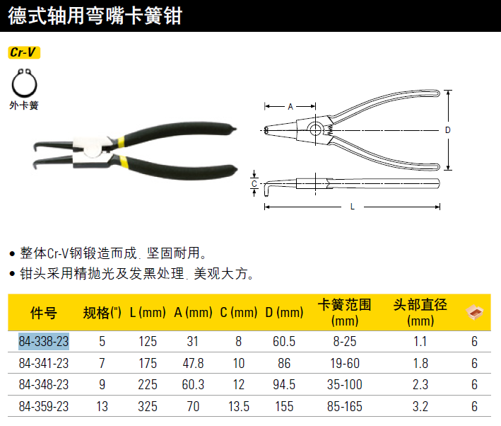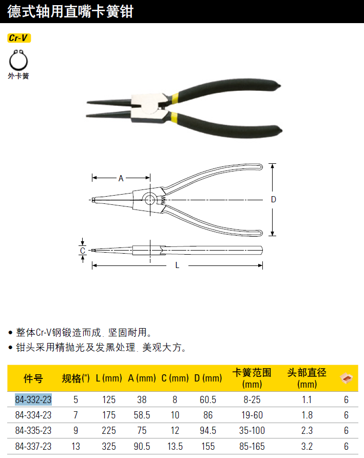 史丹利(Stanley)卡簧钳5英寸德式轴用直嘴卡簧钳(外卡) 84-332-23