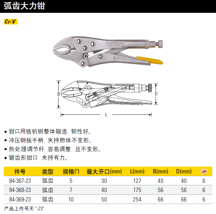 史丹利(STANLEY)铬钒钢弧齿大力钳夹持钳阀门钳5英寸 84-367-23