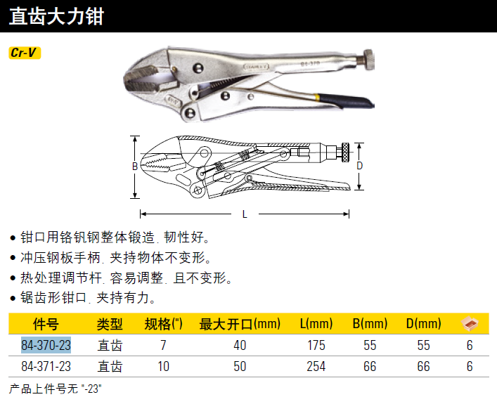 史丹利STANLEY 直齿大力钳7英寸 工业级固定夹持钳工具大力钳子 84-370-23 可定制