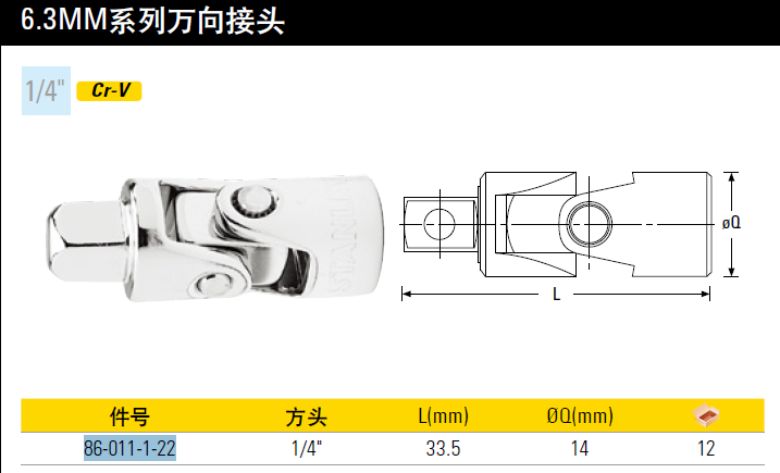 史丹利(Stanley)1\/4套筒转接头接杆 6.3mm系列小飞棘轮扳手套筒延长杆 万向接头 86-011-1-22