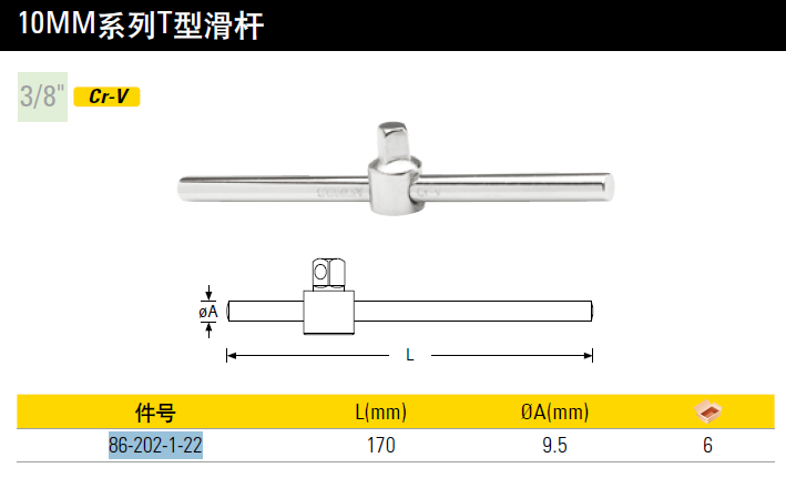 史丹利(Stanley)3/8英寸10mm系列套筒连接杆 中飞汽修快速棘轮扳手套筒转接头加长杆 T型滑杆(170mm)86-202-1-22