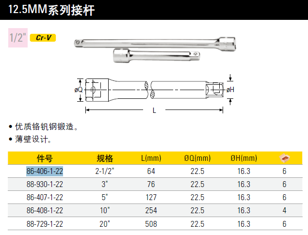 丹利(Stanley)订制6.3MM、10MM、12.5MM、19MM系列接杆 12.5mm(1/2)2.5寸 86-406-1-22