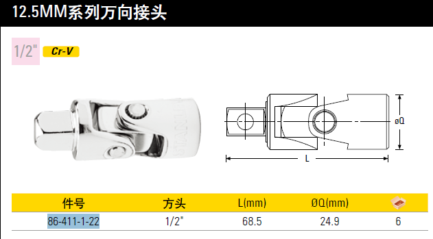 史丹利(STANLEY)12.5mm系列万向接头起子变换头套筒接头棘轮扳手旋具转换头 86-411-1-22 现货