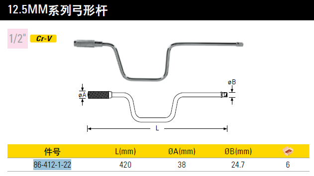 史丹利(Stanley)12.5mm系列大飞棘轮扳手延长杆 套筒转接头 接杆 弓形扳杆(420mm长)86-412-1-22