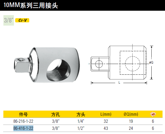 史丹利(STANLEY)10mm系列三用接头多功能棘轮扳手旋具转换头 86-416-1-22 (3/8英寸孔1/2英寸头)现货