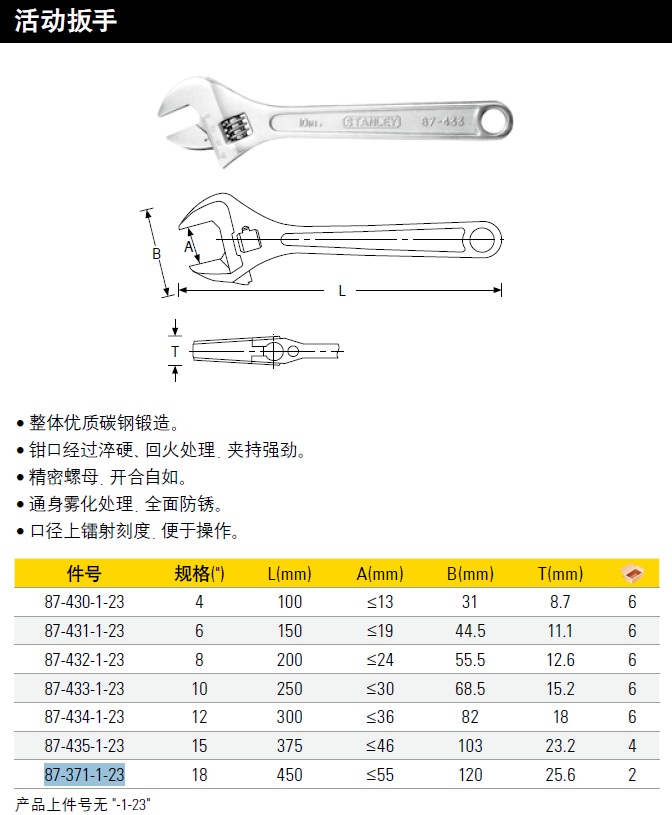 史丹利(STANLEY)雾化光柄带刻度活动扳手活络扳手18英寸 87-371-1-23