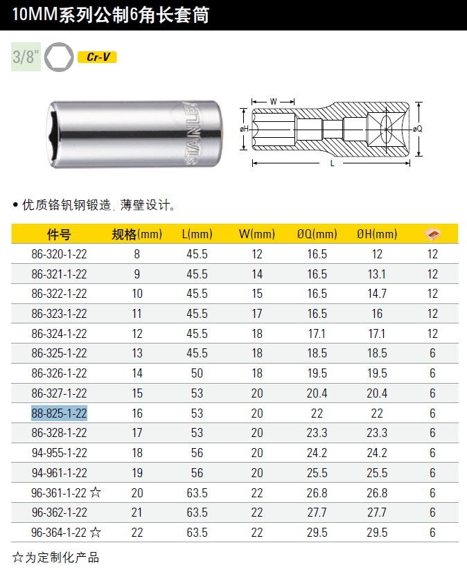 史丹利(STANLEY) 88-825-1-22 Stanley 10MM系列公制6角长套筒