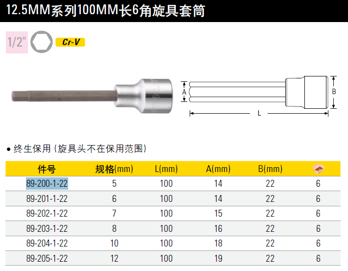 史丹利(Stanley)12.5MM系列大飞旋具套筒压批 内六角套筒批头 5MM 100mm长 89-200-1-22
