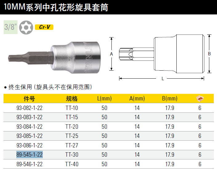 史丹利(STANLEY) 89-545-1-22 Stanley 10MM系列中孔花型旋具套筒 【预计45天出货】