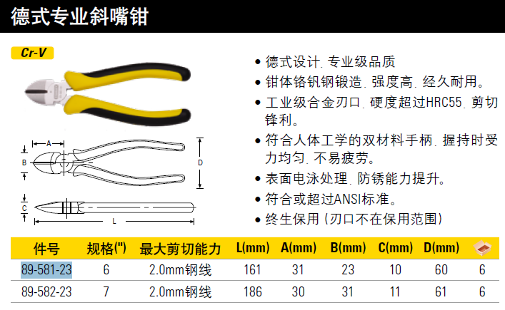 史丹利STANLEY 德式专业斜嘴钳6英寸 斜口钳子 89-581-23企业定制