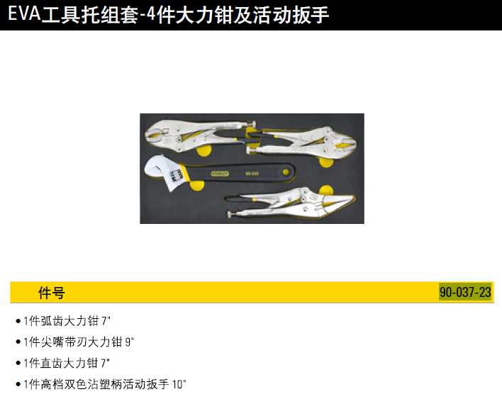 史丹利(STANLEY)4件 EVA工具托组套 大力钳及活动扳手套装 90-037-23