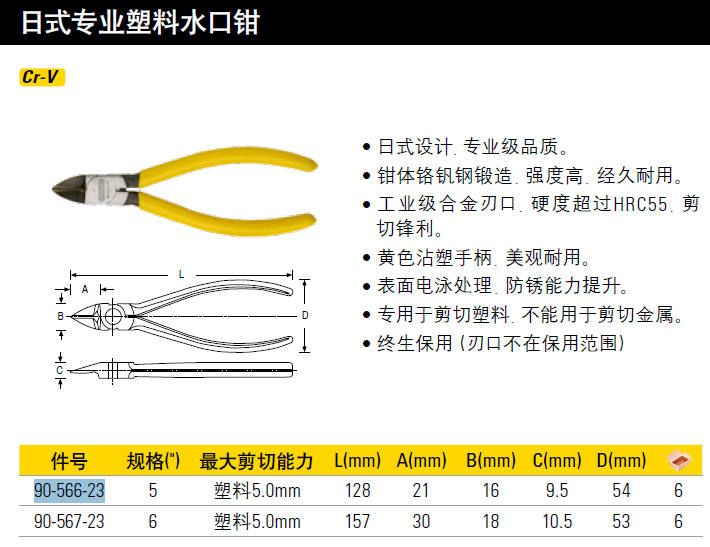 史丹利水口钳5/6/7寸塑料水口剪钳子偏口钳电子电工斜口钳90-566-23 日式塑料水口钳5寸90-566-23