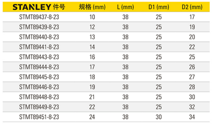 史丹利(STANLEY)91-396-1-22 风动长套筒汽修机修棘轮扳手套筒 12.5MM系列公制6角风动长套筒27mm