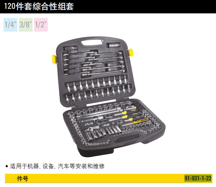 史丹利STANLEY 120件套综合性套装 棘轮扳手套筒批头汽修机修工具 91-931-1-22 企业定制