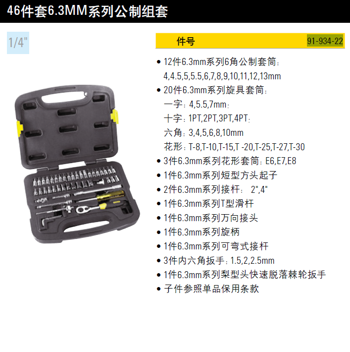 史丹利(STANLEY) 小飞套筒棘轮扳手套装汽修汽保工具 公制组套 91-934-22 现货