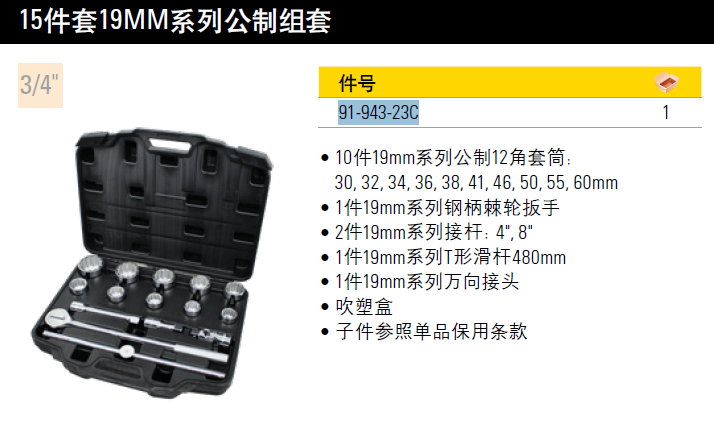史丹利(STANLEY) 公制套筒套装 棘轮扳手套筒接杆组套 91-943-23C 现货