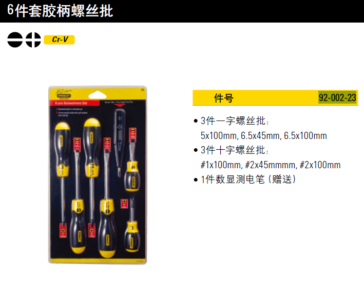 史丹利STANLEY 6件套胶柄螺丝批测电笔套装 电工起子小梅花家用维修改锥强磁工具工业级 92-002-23可定制
