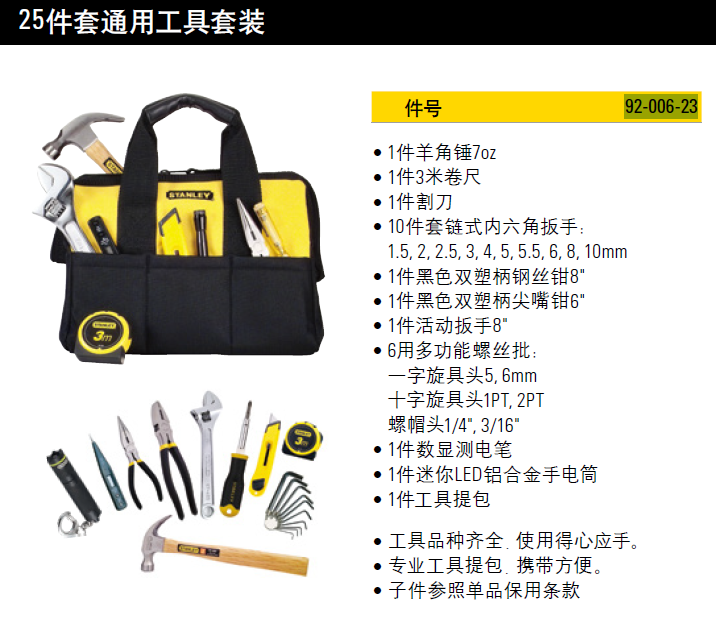 史丹利(STANLEY)25件套维修工具包套装物业检修工具组套 92-006-23 现货